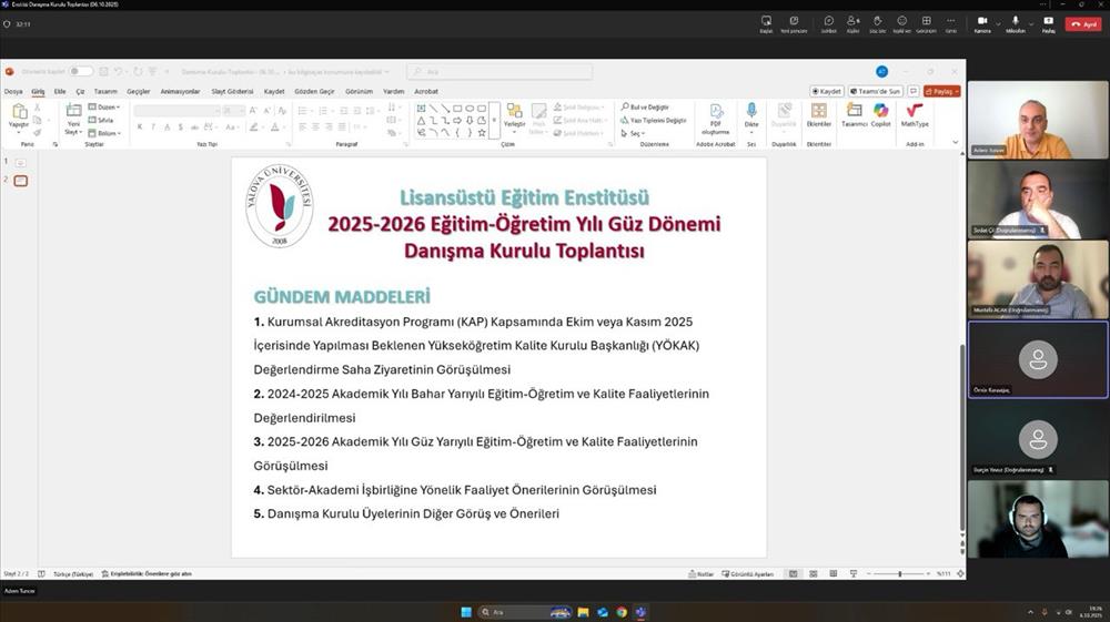 Enstitü Danışma Kurulumuz, 2025-2026 Eğitim-Öğretim Yılı Güz Dönemi toplantısını 06 Ekim 2025 tarihinde çevrim içi olarak gerçekleştirmiştir.