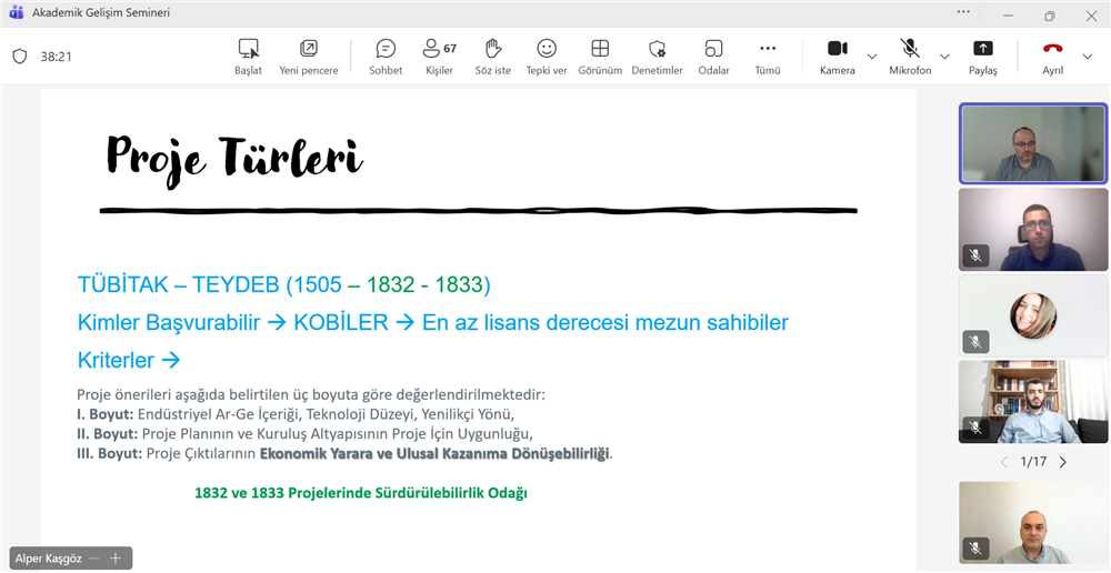 Lisansüstü Eğitim Enstitüsünün "Akademik Gelişim Seminerleri" kapsamında "Lisansüstü Araştırmalarda Proje Yazımı" konulu seminer, Yalova Üniversitesi Ar-Ge Koordinatörü Doç. Dr. Alper KAŞGÖZ tarafından 27 Kasım 2025 tarihinde çevrimiçi olarak verildi.